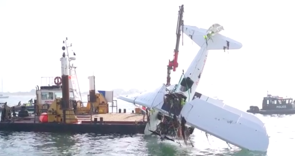 CCTV from the Haven Hotel, shared with the BBC, shows the moment that the plane crashes, narrowly missing several boats.