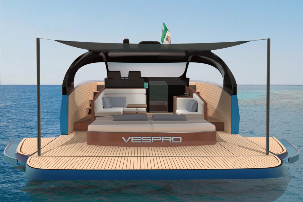 “Centouno Navi is all about respect for the sea and the Vespro reflects that,” says Lucchesi. “Because the hull form and waterjet propulsion are so efficient, the yacht actually burns less fuel and emits fewer emissions at higher speeds. So… fast is green!”