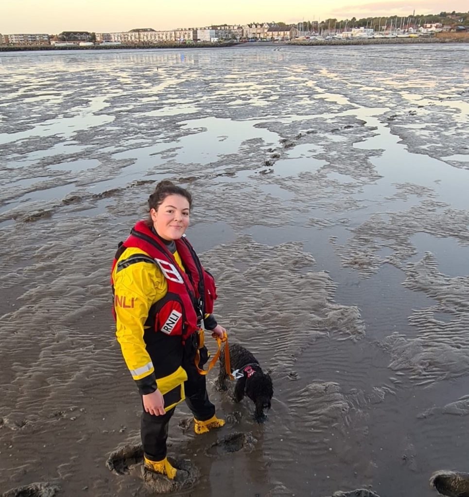 When she saw the cockapoo, Ella dismounted from the boat and launch vehicle and carefully walked towards the dog. She was able to reassure the animal and transferred it onboard West Kirby RNLI Lifeboat. The crew then returned to shore at Sandy Lane slipway to reunite the dog with its owners.