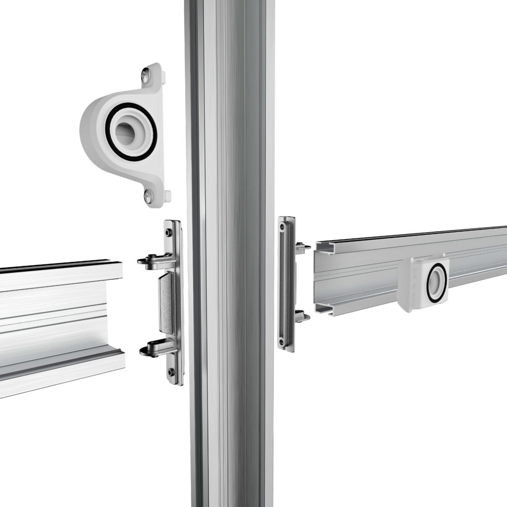 With the mission to simplify aluminium extrusion framework in mind, the SL-RLE extrusion is designed to be used on either the vertical or horizontal plane, which can be cut to size to build a grid, using the three connectors that give designers and builders virtually limitless possibilities to create a precise framework to mount panels to.