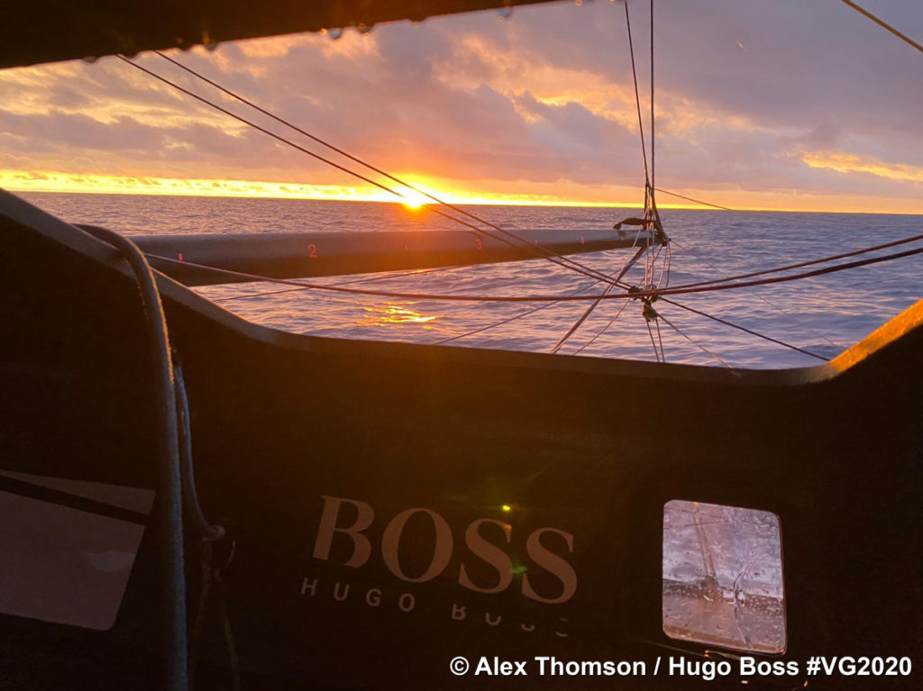 “Alex is just finishing off some tidying up. He has done a great job and is now back focussing on the racing. We are lucky where it happened and also that we carry more spares than a lot of teams. So he is on a bit of a high, he worked incredibly hard to complete the repairs, it is a horrible place in the boat to have to work,” says his team.