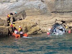 RNLI Torbay Coxswain, Mark Criddle, says: “This man did absolutely the right thing in running their boat onto the rocks where they all managed to scramble to safety.