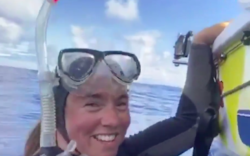 After ensuring all safety precautions were in place – she says on her website that she’s been too afraid to get off her boat in her three solo transatlantic crossing under sail – and even though she previously wanted to swim, it took a while to build up to the moment.