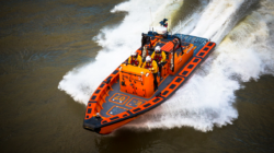 E class is the fastest lifeboat in the RNLI fleet and was specially designed for London’s busy River Thames. With its powerful tidal currents, submerged debris and heavy traffic, the Thames can be incredibly dangerous for those on and around the water. The E class lifeboat was designed to handle these river conditions. The crew consists of four people who sit on jockey and bench seats, with capacity for 20 casualties.