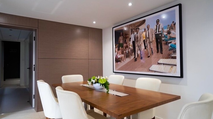 “On site there is a bar named Robert’s bar, in loving memory of Sunseeker founder, Robert Braithwaite. We also have a 10-seater dining table for entertaining, a design suite for new owners to choose design specs, and an impressive private cinema, boasting a wealth of technology. The living area has an array of bespoke artwork provided by the Maddox Gallery. The exterior of the showcase boasts a number of Sunseeker Yachts, all of which are available for viewing.”