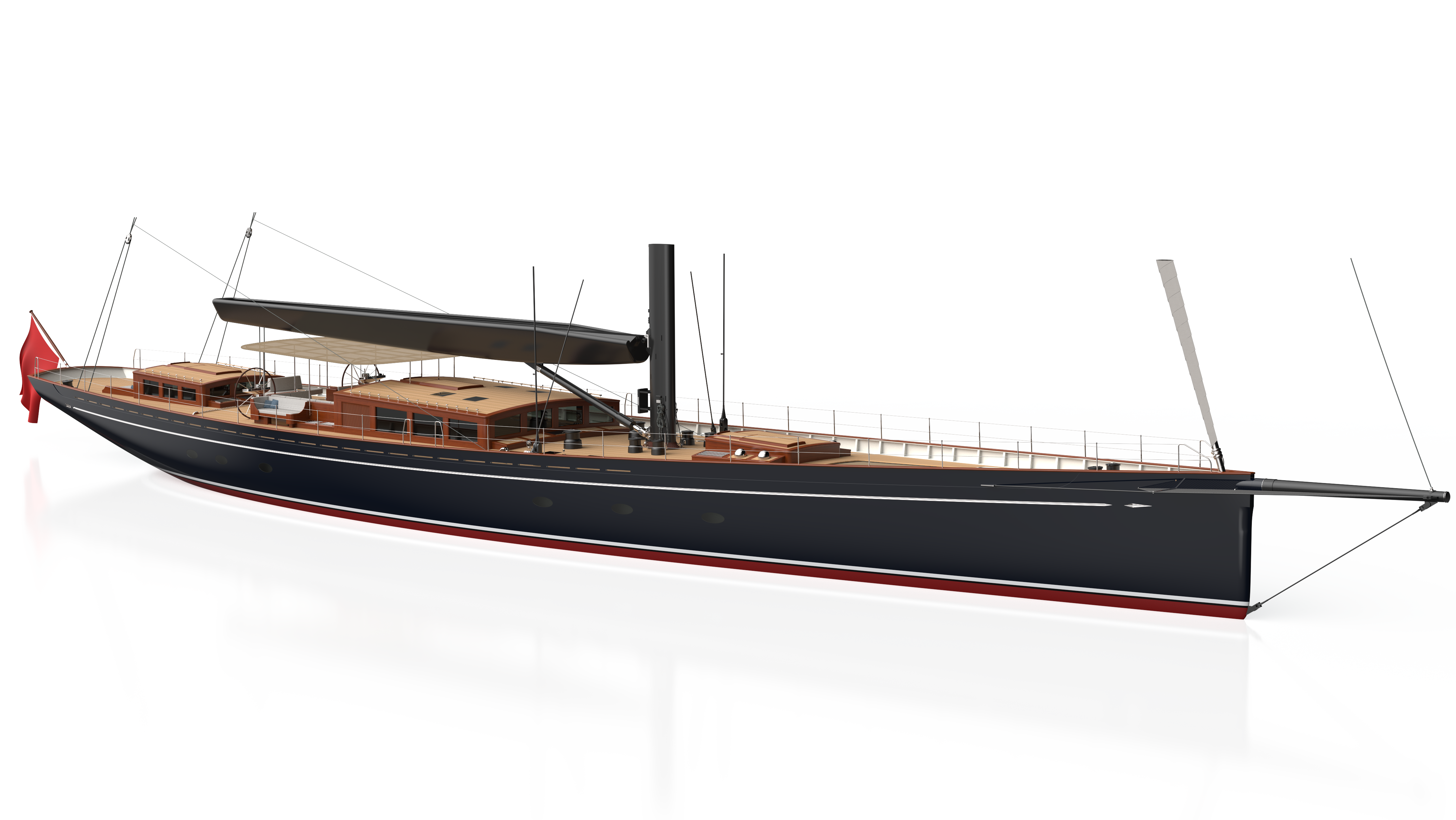 The design brief centres on long-range cruising capability combined with competitive sailing potential, including participation in superyacht regattas.