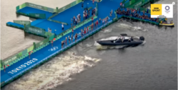 A large twin outboard RIB caused chaos on the start line of the Men’s triathlon event at Tokyo 2020 today.