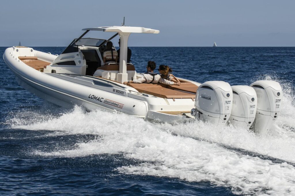 Italy-based Lomac Nautica produces a variety of models in six different series, from the 14 metre GranTurismo 14.0 powered by twin XTO 425hp V8s or Triple 300hp V6s to the 130hp Euforia 580.