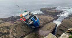 Pictured above, a potting fishing boat was in familiar waters and close inshore; it was a breezy day with a gentle swell and good visibility. The crew were working pots on deck when propulsion was unexpectedly lost. The effect of the swell then started moving the boat closer inshore until contact was made with the rocks.
