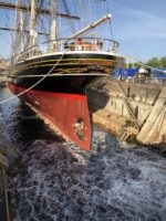 The Clipper Stad Amsterdam has recently been refloated in Den Helder’s historic Willemsoord Harbour. The drydock doors were opened, allowing sea water in. It was the first time the vessel had water under her keel since her arrival in Den Helder in November last year. There, Damen Shipyards Den Helder is undertaking a mid-life maintenance project on the vessel.