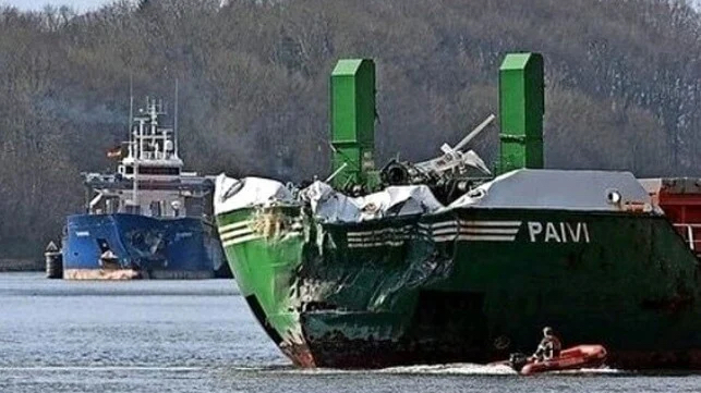 According to the waterway and shipping authority responsible for the stretch of water (WSA), the cargo ships Bjoerkoe and Paivi collided on Tuesday morning under the high bridge Levensau, reports Salvage & Wreck. A large gash was left on the hull of Bjoerkoe, while Paivi also suffered significant damage to the bow.