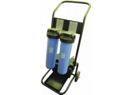 The DuoCart utilises a particulate pre-filter and a high-capacity Wavestream filter, which is manufactured to Lloyds Register Standards, and has a flow rate of between 20-50 litres per minute depending on the pump. They are fitted on a manoeuvrable cart, which also contains the suction lance and outlet hoses, and operates either via a nearby DC power source or by using its own battery power.