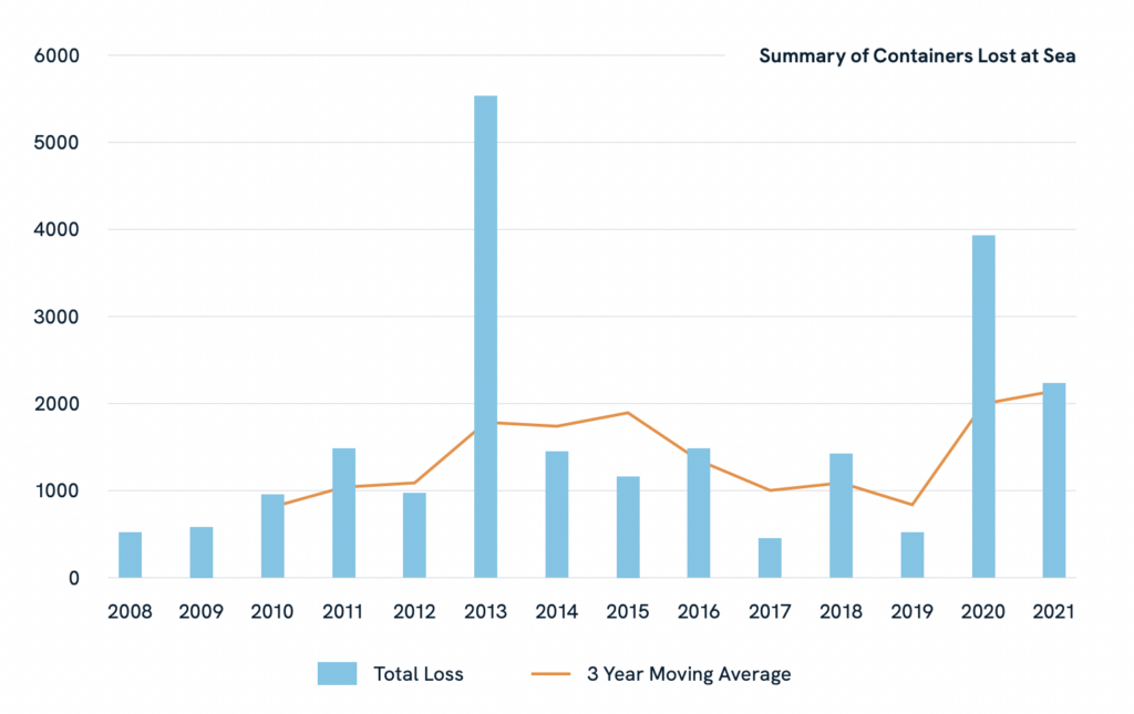 Over the last two years, there has been a ‘worrying’ break in the downward trend for losses, with the average number of containers lost at sea per year increasing by 18 per cent to 1,629.