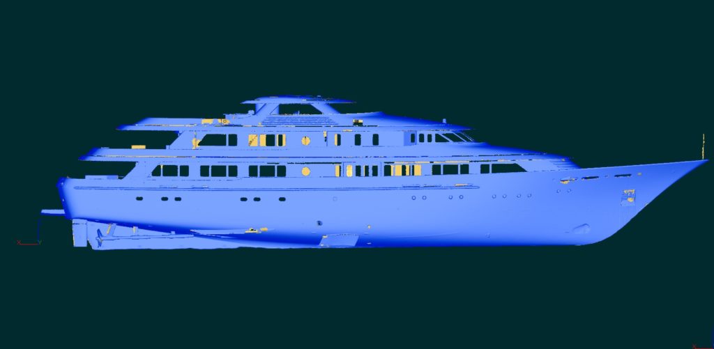 “Modern laser scanning techniques deliver quality in the form of hydrostatic, stability and structural information,” explains 3DMSI’s Managing Director, Dr James Jobling-Purser. “At 3DMSI, we take a pioneering approach to problem-solving through our analysis of 3D geospatial data. By tailoring our skills that were honed in the mining and architectural sectors for the marine industry, we can capture key hull data up to the water line of a craft whilst it is afloat and offer design engineering whilst it is in service, to minimise vessel down-time, which is highly beneficial to the client.”