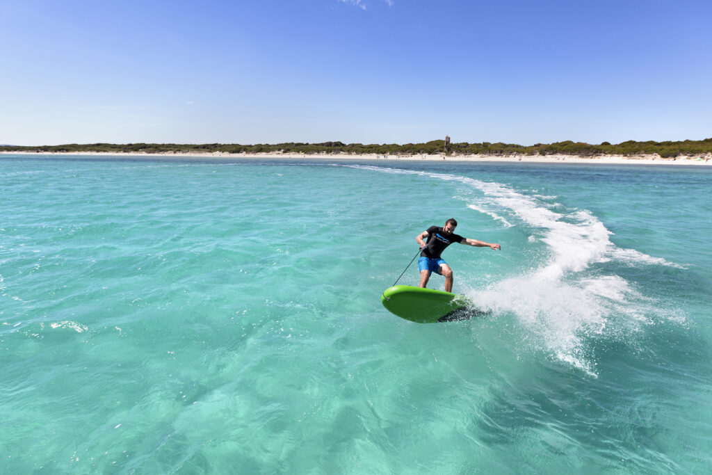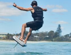 The Fliteboard eFoil is claimed to be the world’s most advanced electric foil board. It can reach distances over 19 miles and has a riding time of 1.5 hours.