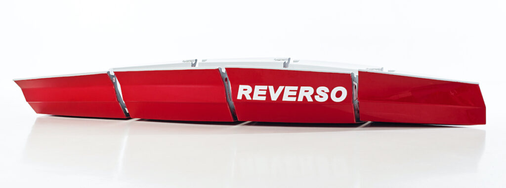 According to the manufacturer, the Reverso Air can be assembled in 180 seconds. Every one of the four sections is a closed element, waterproof and floating by itself. The whole assembly provides a self-bailing cockpit, with the floor always above the waterline, making Reverso stiff and safe.